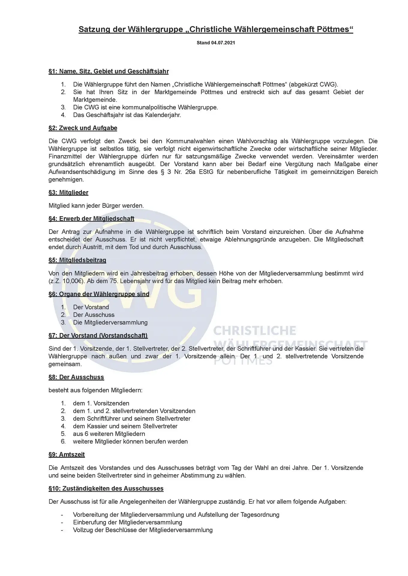 Mirko Ketz wurde mit 62 Stimmen Vorsprung vor Manfred Graser zum 1. Bürgermeister gewählt. Die CWG stellt 4 MGR und 2 Ortssprecher.