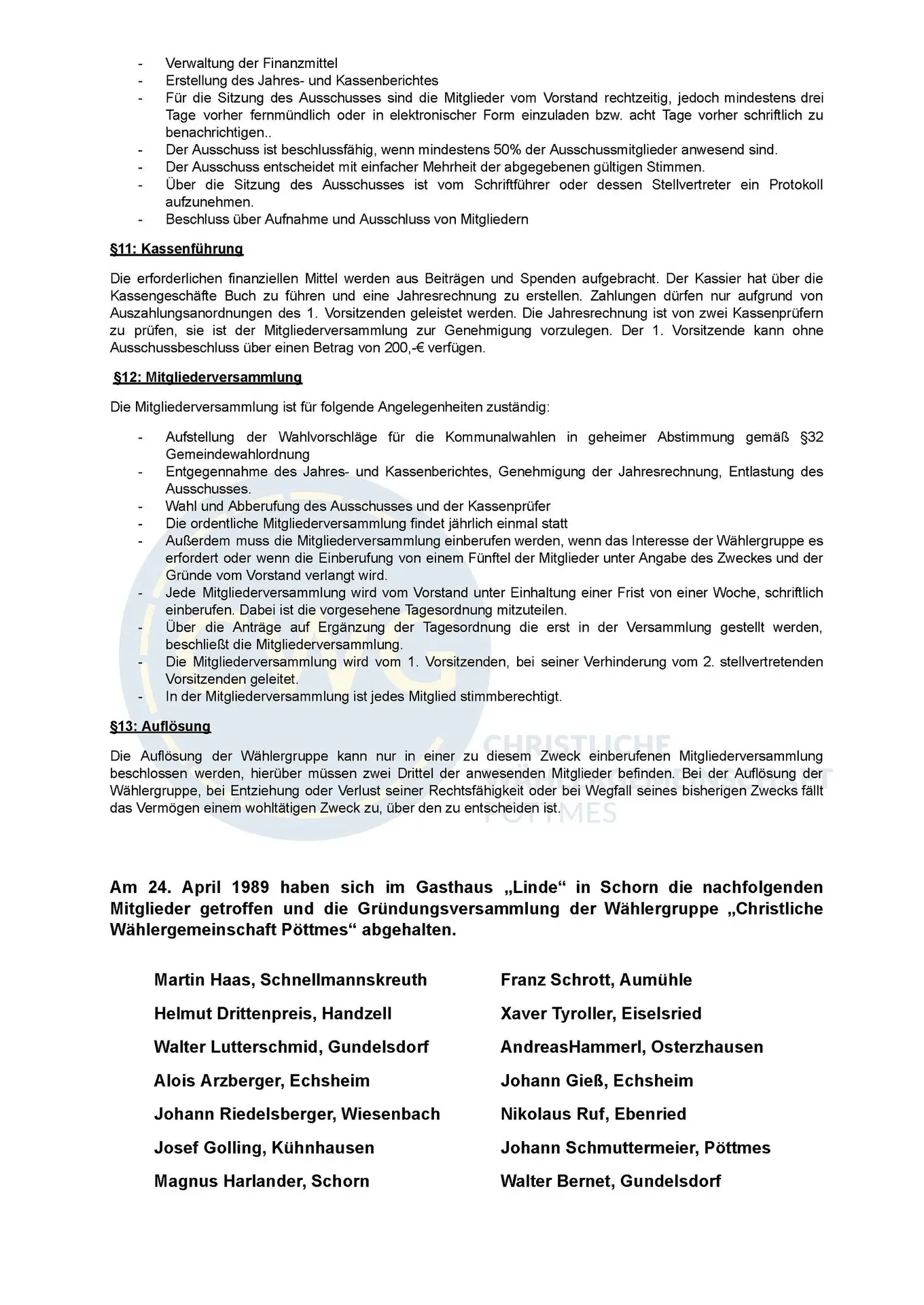 Am 24. April 1989 fand im Gasthof “Linde” in Schorn die Gründungsversammlung der CWG Pöttmes statt.